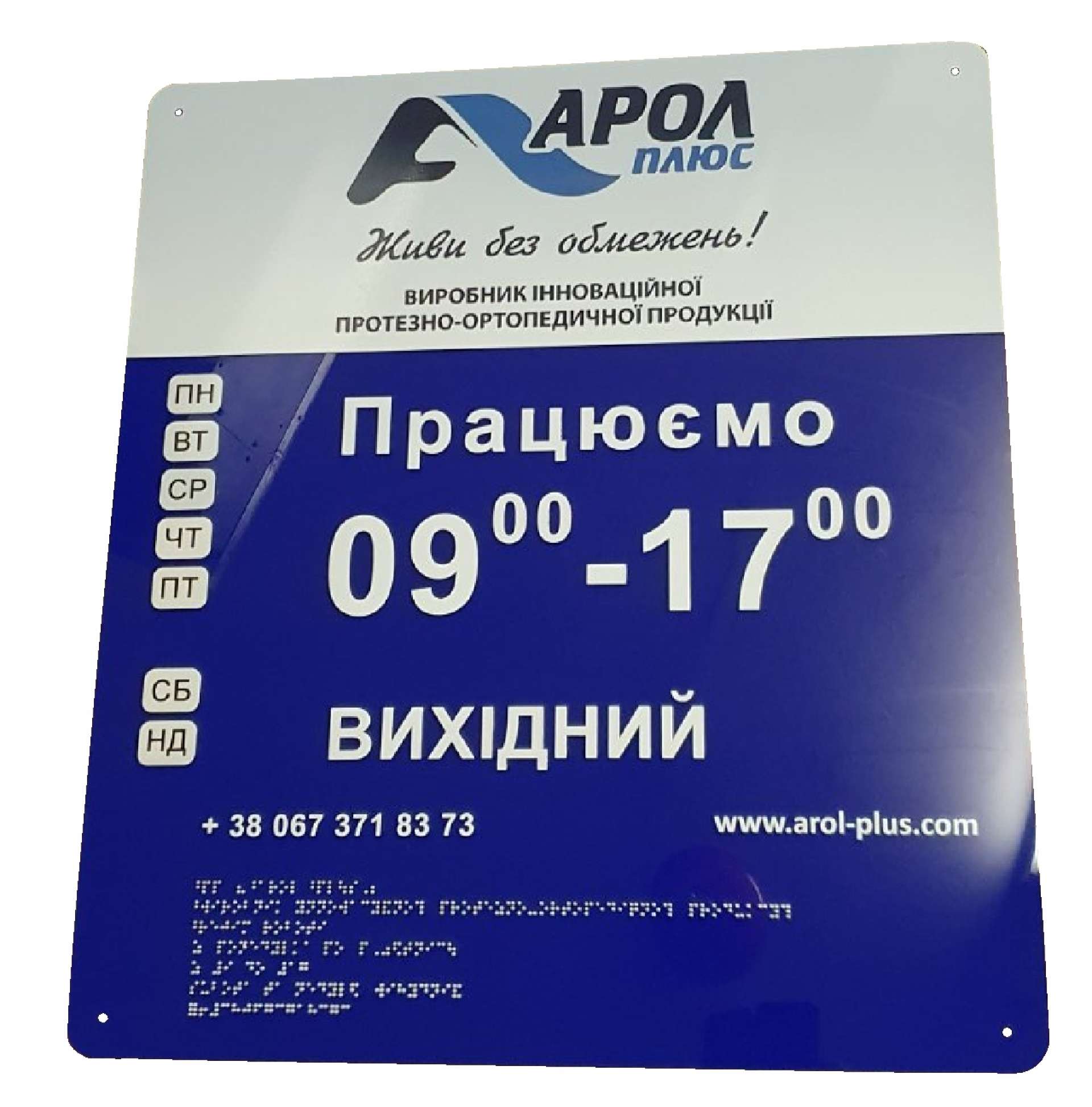 Вивіска з акрилу з нанесенням шрифта Брайля. Виготовляємо індивідуальні розміри.